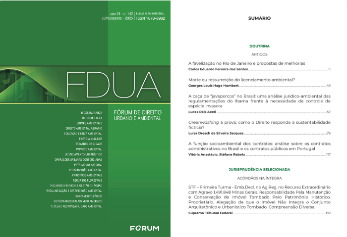 A Aceti Advocacia comunica que o Dr. Lucas Reis Aceti, membro do escritório, teve artigo publicado na Revista Fórum de Direito Urbano e Ambiental (FDUA) – ano 24, nº 142, jul./ago. 2025 –, periódico jurídico de referência nacional na área ambiental e urbanística.