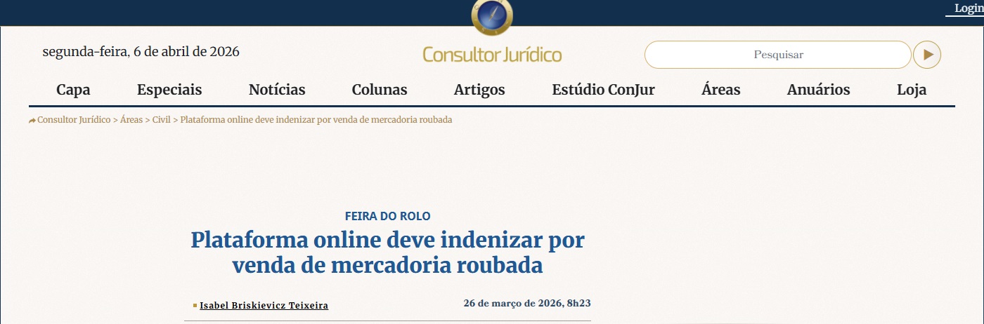 Dr. Lucas Aceti foi destaque no Consultor Jurídico, com a matéria: “Plataforma online deve indenizar por venda de mercadoria roubada”